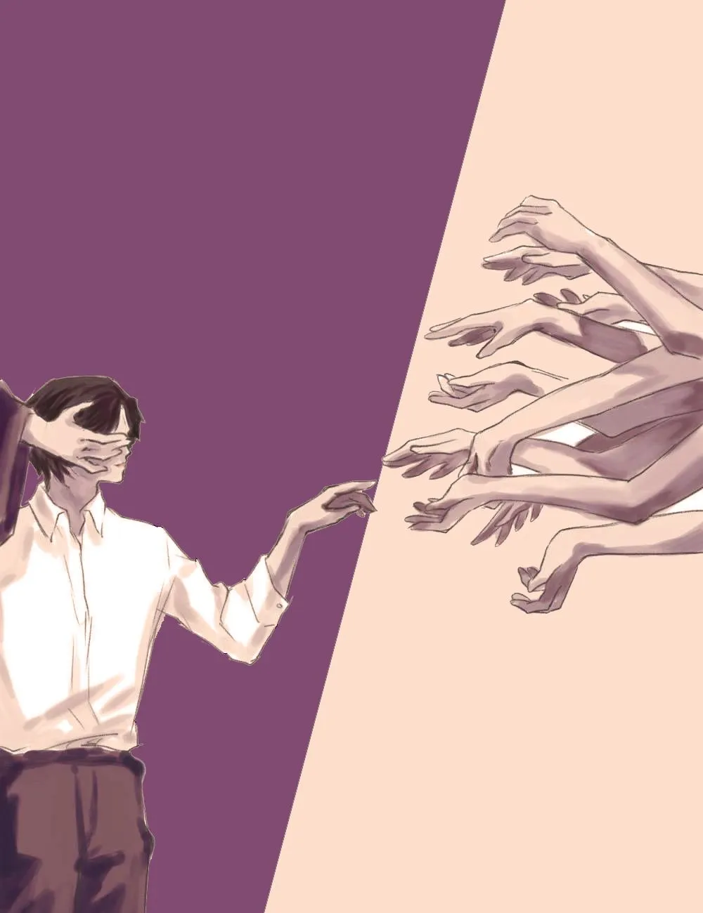 Các số liệu bắt đầu trở nên hỗn loạn. Ánh sáng xanh phát ra từ những con số hơi nhấp nháy rồi dần chuyển thành màu xám xịt. Từ trong hư vô, một người thanh niên bước ra. Hắn mang hình hài của một con người nhưng lại khiến người khác cảm thấy hắn không phải người. Có lẽ vì gương mặt của hắn quá mức hoàn hảo đến nỗi người khác cảm thấy hắn không chân thật. Hắn từ từ tiến lại gần Mạc Nhiên. Trường bào tím cũng nhưng hoa văn kì dị khiến người ta không khỏi hoài nghi đây là một vị vương tử chuẩn bị bước lên bậc tam cấp nhận lấy vươn miện cùng quyền lực vô hạn. Mà người trao cho hắn, chính là chàng trai tóc đen này. Hắn rũ mắt, con ngươi lạnh băng hoàn toàn bao trọn lấy Mạc Nhiên.