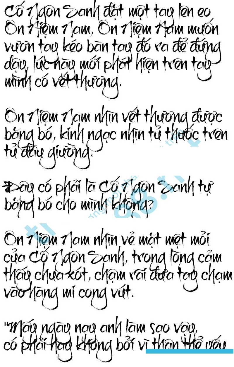 Cố Ngôn Sanh bước đến bên giường, nhìn người sắc mặt tái nhợt đang ngủ say, nhẹ nhàng rút tay Ôn Niệm Nam ra, nhìn vết thương trầy xước trêи đó, trong mắt hiện lên vẻ xót xa và tội lỗi.