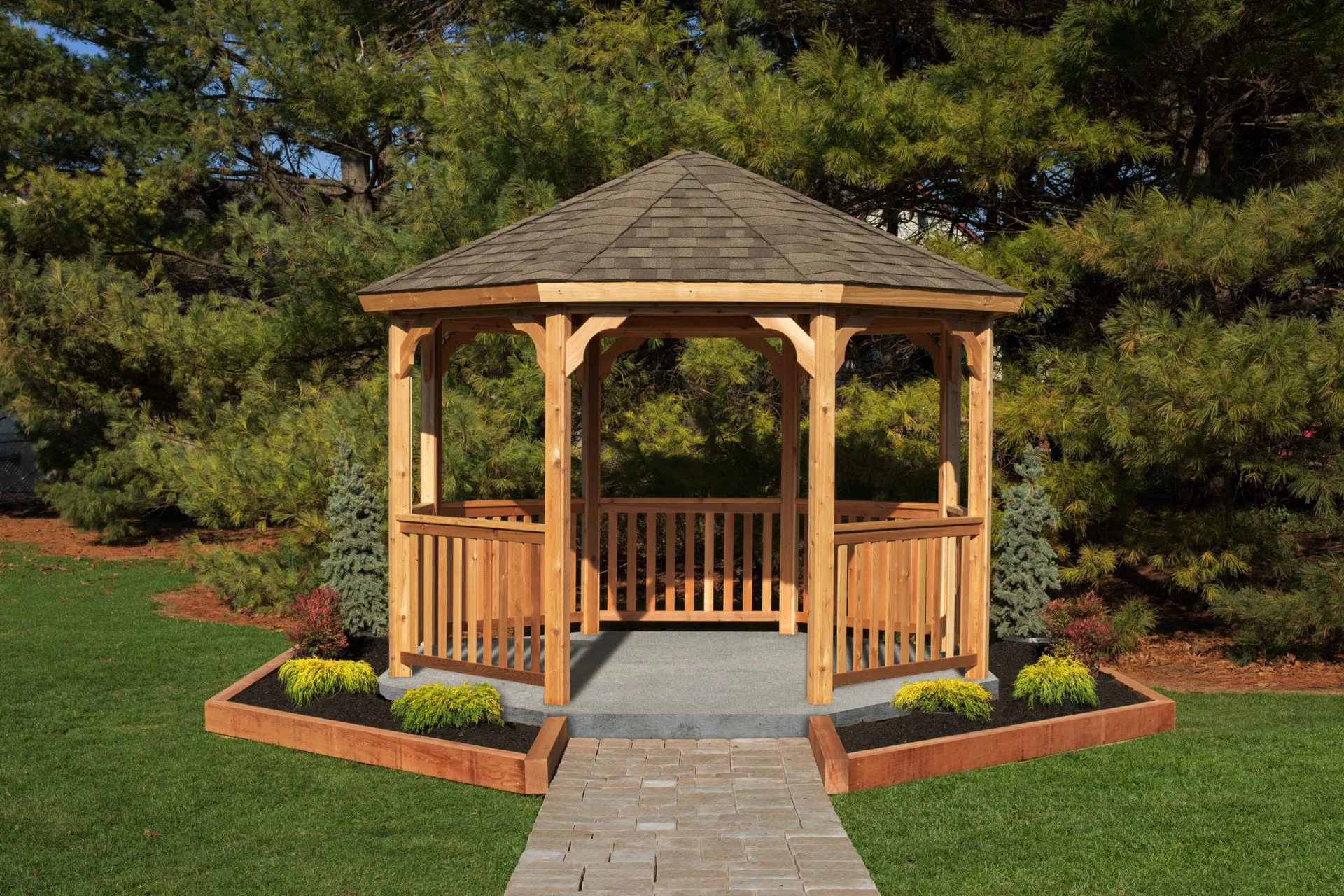 Chú thích: đình nghỉ mát/ lương đình/ gazebo: chỗ nghỉ ngơi có mái che trên sân, vườn. (Hình minh họa trên pinterest hơi ố dề.)