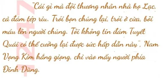 “Chào ông, tôi là Trần Phong, dẫn đầu đoàn thương nhân nhà họ La, chúng tôi…”, Trần Phong hít sâu, che lấy ngực mà đứng dậy. Anh ta định giải thích thì nào ngờ Nam Vọng Kim lập tức trừng mắt: “Bảo chúng mày cút đã là cho chúng mày sĩ diện rồi, có tin tao cho chúng mày một đao không hả?”