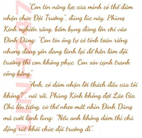 “Chức đội trưởng do anh ta đảm nhận sao ạ?”, Phùng Kính nghe xong thì mặt mày tỏ vẻ khó chịu, chức đội trưởng lại giao cho một người ngoài.