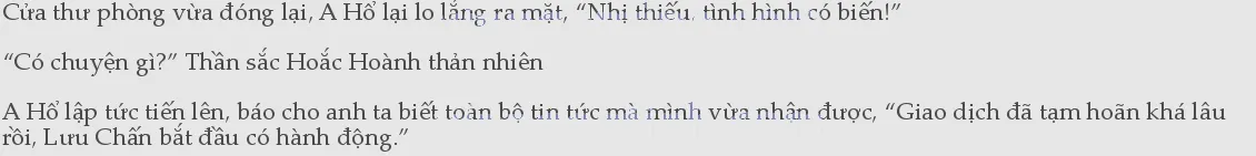 A Hổ giật mình sửng sốt một chút, sau đó vẻ mặt lại lo lắng, cố ý đè thấp giọng, “Dường như đã bắt tay với Đại thiếu gia.” “Hoắc Mân ư?” Hoắc Hoành nhíu mày, trong giọng nói có vài phần âm trầm, “Là ý của anh ta, hay là ý của ba tôi?” Hoắc Lãng Khải muốn ra tay ư? Nhưng nghĩ lại thì thấy không thể nào.