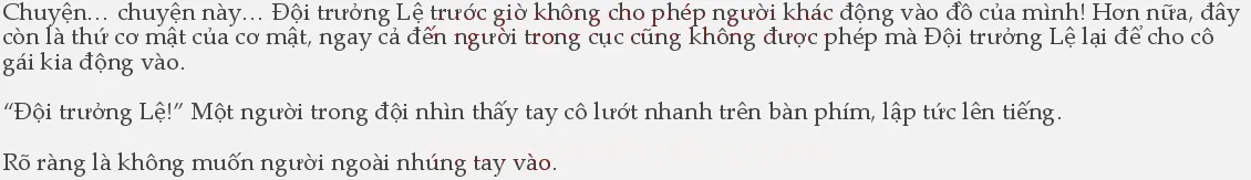 Tài liệu này họ phải tốn bao nhiêu công mới giải mã được, một cô gái lạ hoắc từ đâu đến chẳng thèm chào hỏi gì lại bắt đầu tùy tiện sửa như thế, ngộ nhỡ hỏng thì làm thế nào?