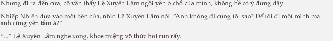 Nói rồi, cô phi đến kéo Lệ Xuyên Lâm đi khiến anh ta chẳng kịp nói câu nào.