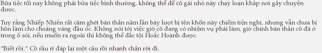1hiếp Nhiên vừa vào toilet, việc đầu tiên cô làm là súc miệng. Sau năm, sáu lần súc miệng, nhìn qua gương thấy cánh môi mình đã hơi sưng lên thì cô không tự chủ được mà đưa tay lên sờ.