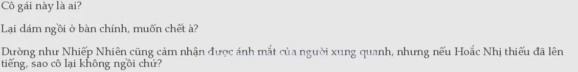 Vì thế, cô làm như không thấy ánh mắt của đám người đó, thoải mái ngồi xuống.