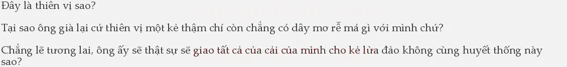 “Vậy con tiếp tục nói2đi, ta nghĩ hẳn là con không nghĩ chỉ dùng một tên phục vụ mà đã có thể đánh thắng em trai con đúng không?”