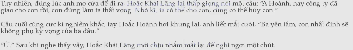 Ông ta có thể nhịn việc Hoắc Mân sinh sự trong công ty, ra tay với em trai ruột của mình vì những chuyện đó đều không động vào vảy ngược của ông ta. Thương trường như chiến trường, chỉ cần nó có thể khiến1Hoắc Hoành ngã xuống thì tức là nó có bản lĩnh.