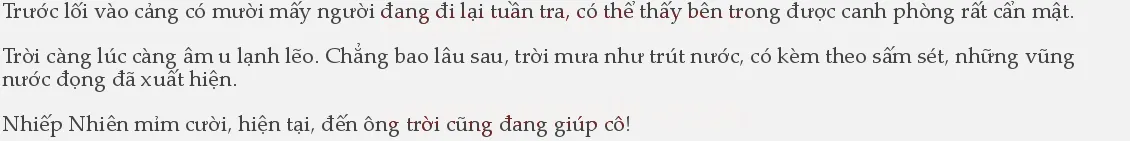 1ưa sẽ tạo ra trở ngại lớn cho tầm nhìn, chỉ cần tốc độ của cô nhanh là có thể tránh thoát được nhóm người này. Cô núp ở một bên âm thầm quan sát hồi lâu. Trời mưa càng lúc càng lớn, cô nhìn về phía tầng mây đen kịt ở phía chân trời đằng Đông xa xa, đoán chừng trận mưa này chắc phải kéo dài tới tận nửa đêm.