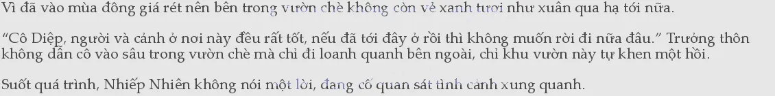 Nhiếp Nhiên1đi tới bên cạnh anh ta, nói một hơi: “Lá chè già cũng không được hái xuống, có vẻ đã bỏ hoang lâu lắm rồi.”