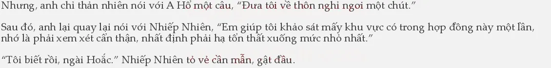 A Hổ chịu trách nhiệm đưa Hoắc Hoành về trong thôn, còn Nhiếp Nhiên cẩn thận đi xem xét các địa phương được thu mua có trong hợp đồng.