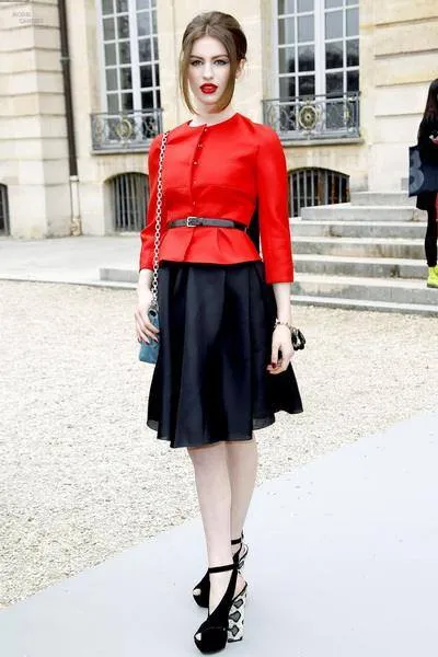 Dáng người cô cao gầy, khuôn mặt cân đối, áo đỏ đi với váy xòe màu đen* đã quyến rũ biết bao người.