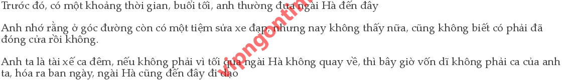 Có điều, ngài Hà thường xuyên đến đây làm gì? Anh chưa từng nghe nói Hòa Mộc có ý định mua lại dãy nhà này Đèn xanh bật lên, dòng người hối hả qua lại trên vạch đường trắng dành cho người đi bộ, Hà Mộc An bỗng nhấc chân, hòa vào dòng người đi sang phía bên kia đường