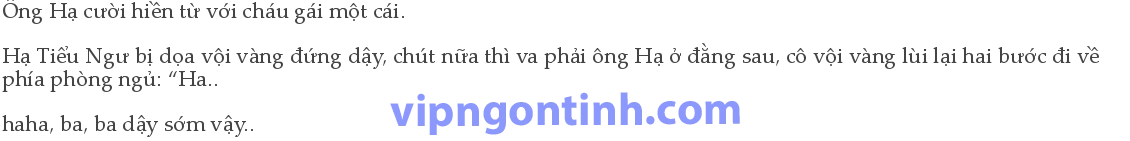 Hạ Vũ thấy vậy, lập tức có chút ngượng, thu lại nụ cười lạnh, có lẽ cháu gái cũng không có ấn tượng tốt về cậu: “Ba, ba đưa Thượng Thượng về phòng chơi đi.”