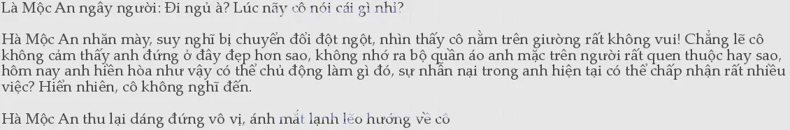 Hà Mộc An liếc nhìn, thấy cô thuận theo cảm giác mông lung lúc nãy lại ngả về3phía này, dùng sức túm chặt chăn kéo hết lên người mình