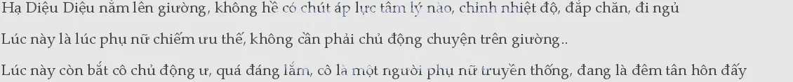 Không phải là cô gái mạnh mẽ đi thuê phòng, đối phương cũng không phải trai trẻ cô bỏ tiền ra bao, có thể đứng ở vị trí chủ động mà thốt ra câu: Mau lại đây, hầu hạ bà đây cởi giày Ngủ đi thôi, nghĩ nhiều nữa cũng vô nghĩa, mai còn phải đưa Thượng Thượng đến trường