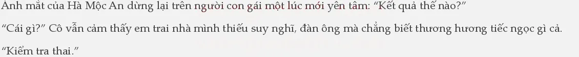 Hà Mộc An nhìn cô chẳng có việc gì lại tự ôm việc vào người, chẳng thèm để ý nữa. Chắc chắn cô sẽ cho rằng anh không quan tâm đến cảm xúc của cô, nhưng nếu như để ý đến thì anh cảm thấy việc này chẳng có gì đáng để nói: “Nó không còn nhỏ nữa nên biết bản thân cần gì, không chừng qua một thời gian nữa sẽ mang em dâu về cho em.”