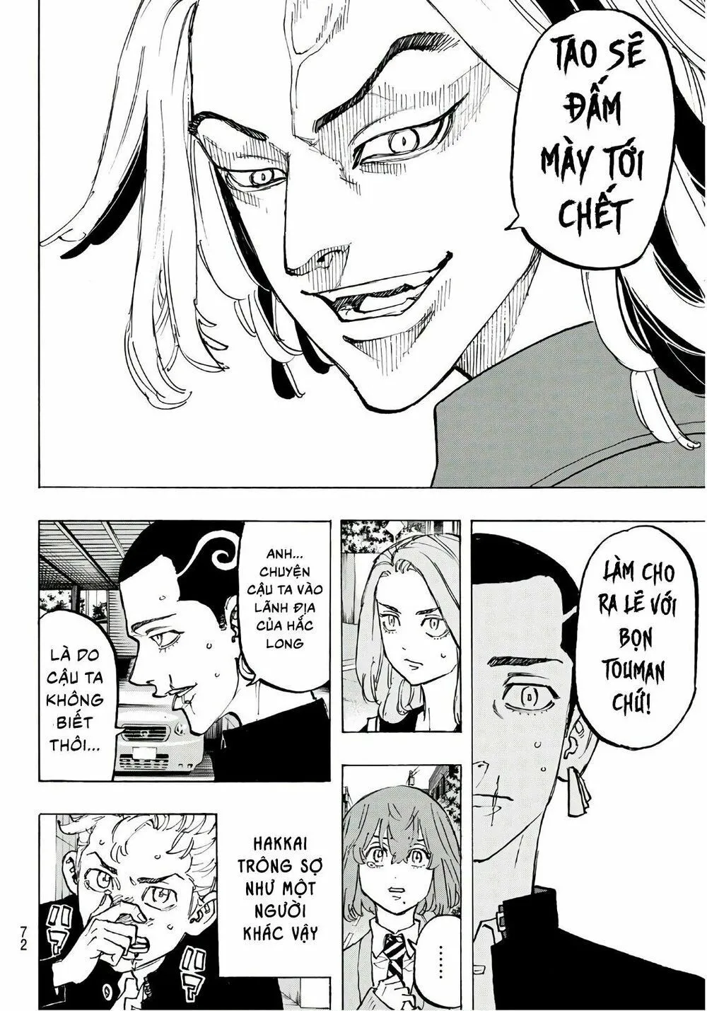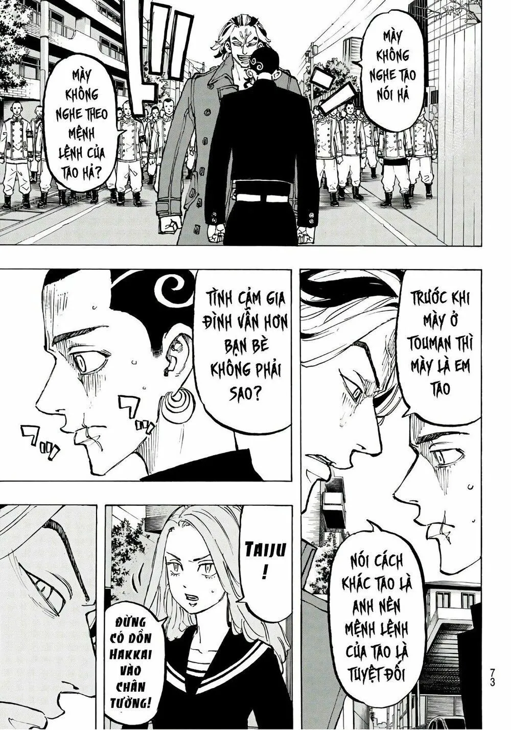 Taiju giơ nắm đấm lên và chuẩn bị đấm vào mặt tôi thì Hakkai lên tiếng với điều kiện trao đổi là cậu ta sẽ rời Touman và gia nhập Hắc Long và phải thả Take và tôi đi.