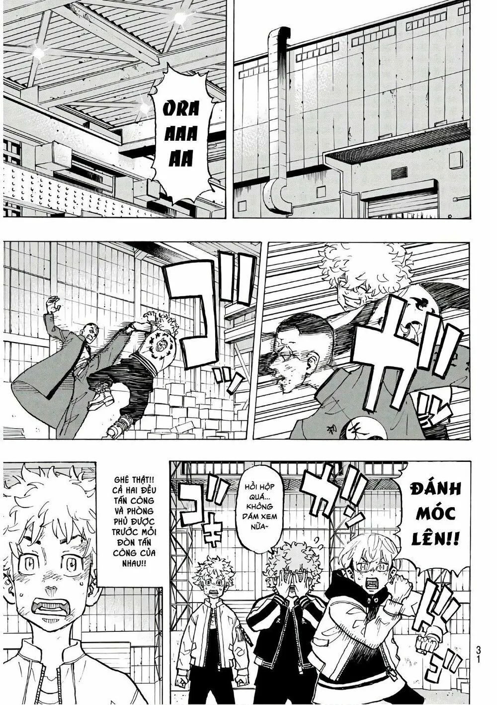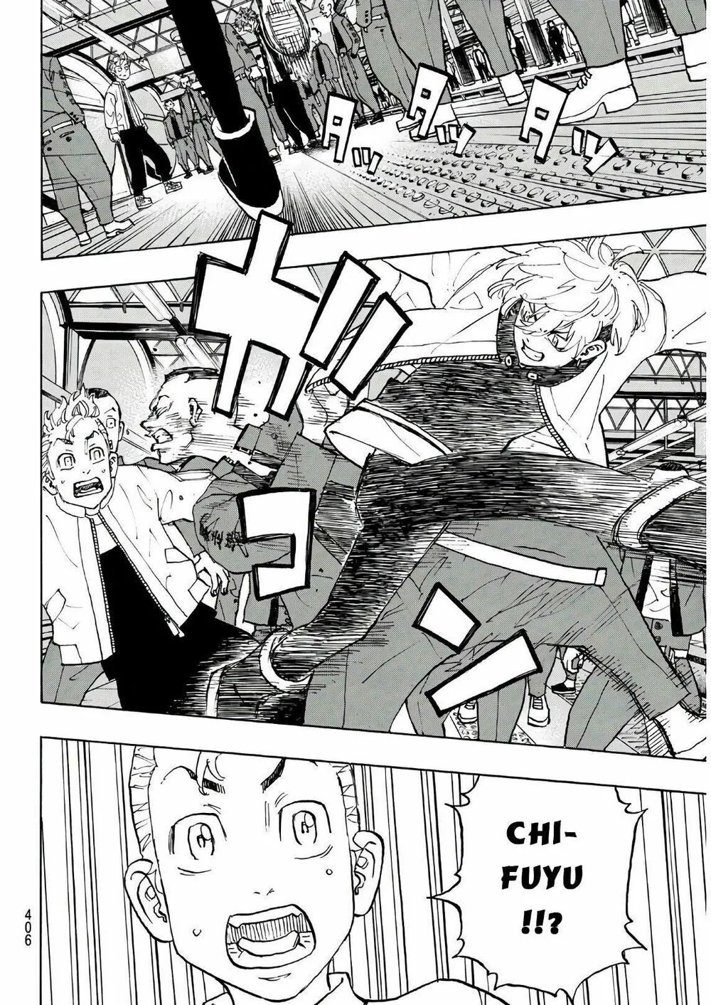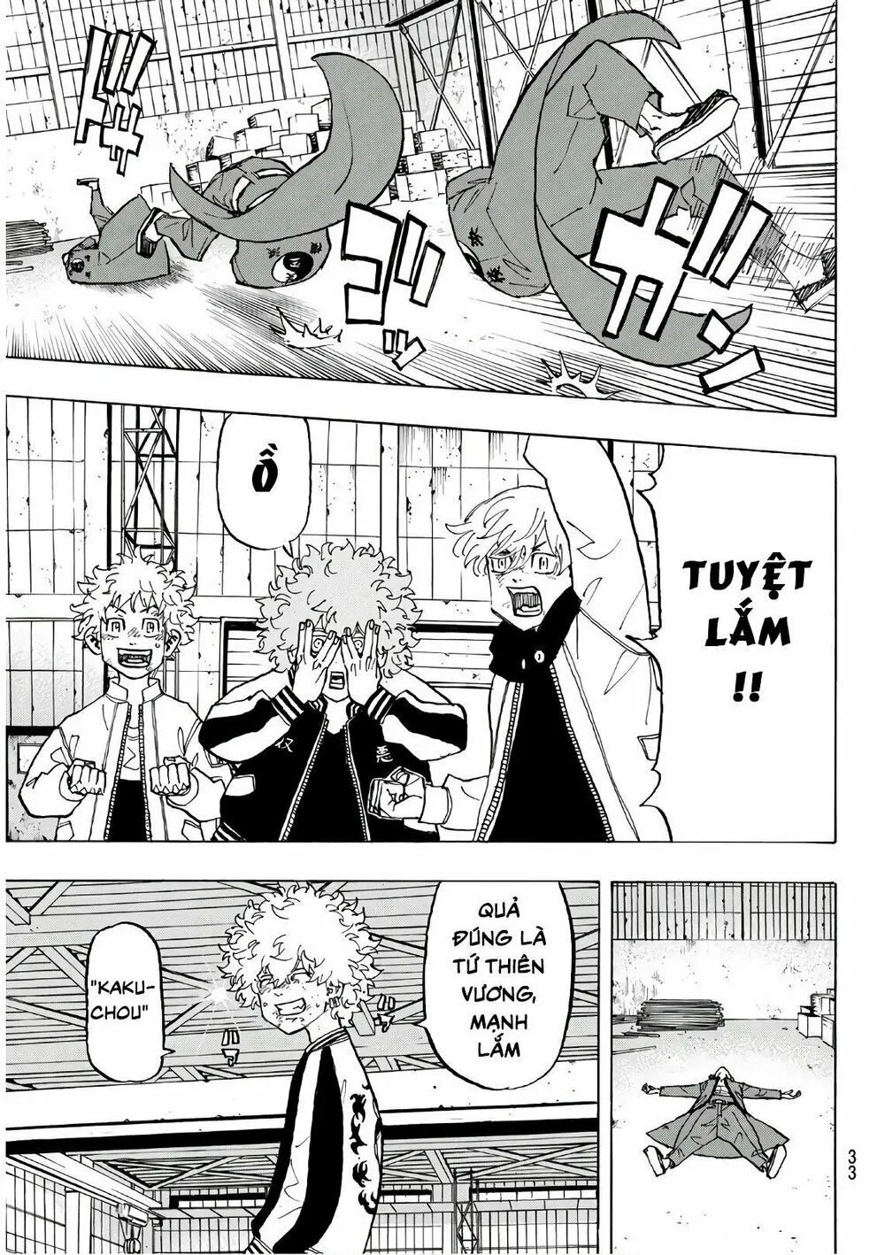 Chifuyu chặn cho tôi và bị tên kia đấm vô mặt. Tôi đỡ cậu ấy, Chifuyu xỉu rồi... Tch..