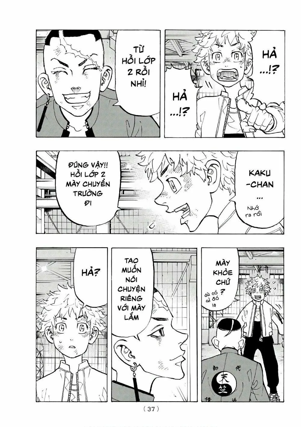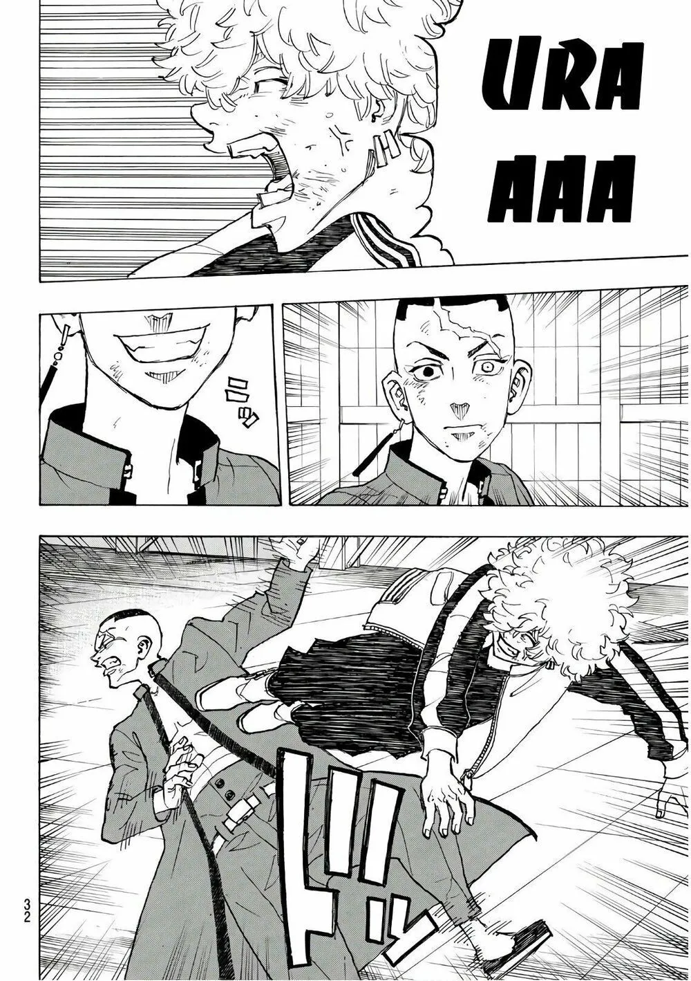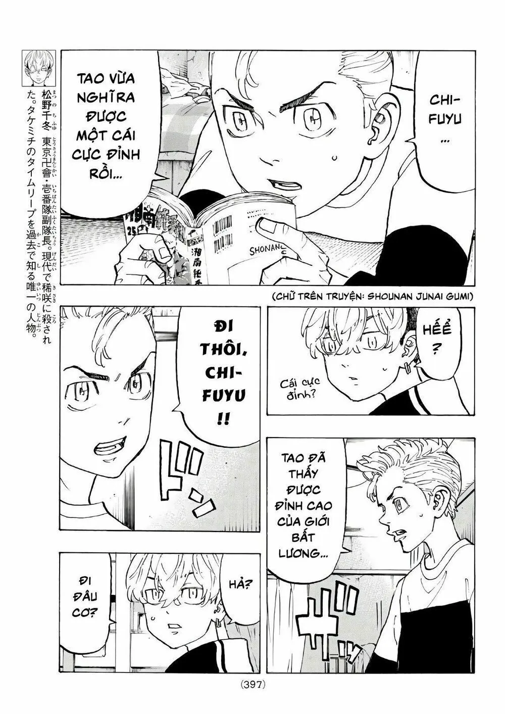 Chifuyu chặn cho tôi và bị tên kia đấm vô mặt. Tôi đỡ cậu ấy, Chifuyu xỉu rồi... Tch..