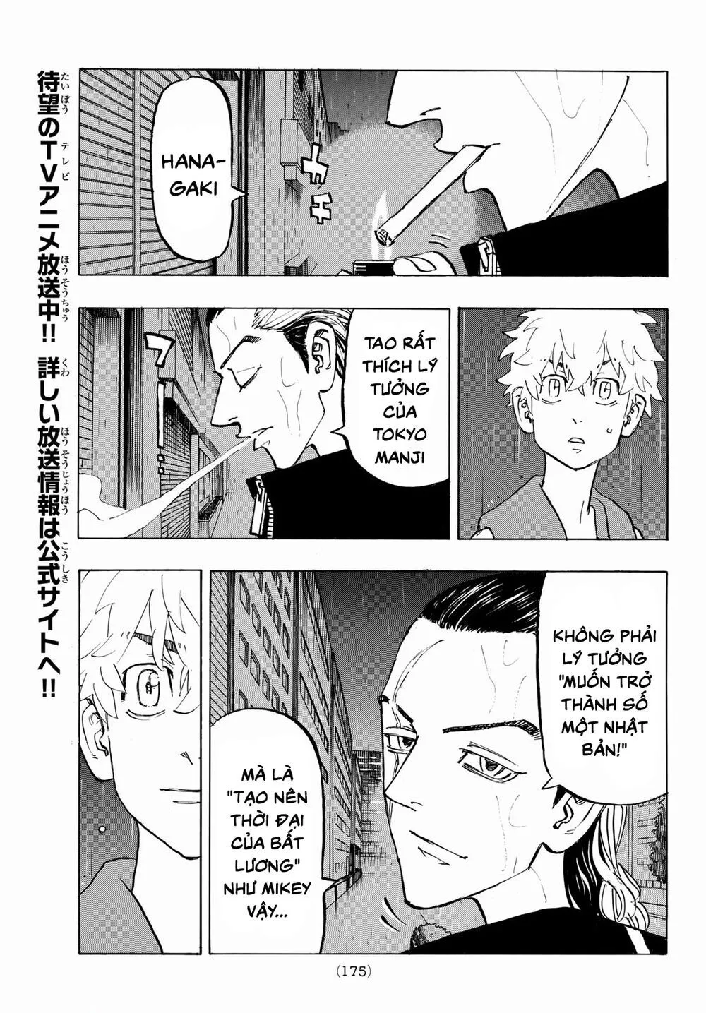 "Hanagaki, tao... Lo lắng cho Draken. Phạm là một băng đảng người lớn gần với Yakuza hơn so với băng đảng đua xe. Cũng có nhiều tin đồn không hay về họ, cẩn thận nhé."-Inui