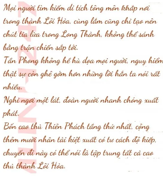 “Ban đầu, người ở một giới trung đẳng đã tìm thấy Long Thành bỏ hoang trong sơn mạch Hỏa Vũ, sau khi liều mạng xông vào, bất ngờ phát hiện ra dị tượng Nhật Diệu Chi Linh. Thế nhưng người đó cũng bỏ mạng bên trong, chỉ có có cao thủ cảnh giới Thiên Phách tầng thứ nhất mới may mắn trốn thoát, chẳng bao lâu sau cũng trúng hỏa độc mà chết”.