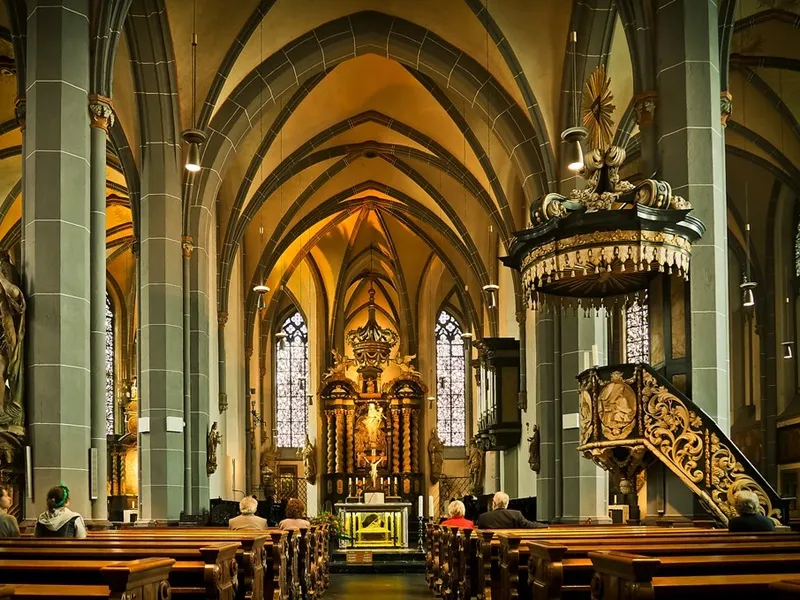 Thánh đường mang đặc trưng của kiến trúc Baroque thường rất lộng lẫy và ánh sáng mạnh mẽ.