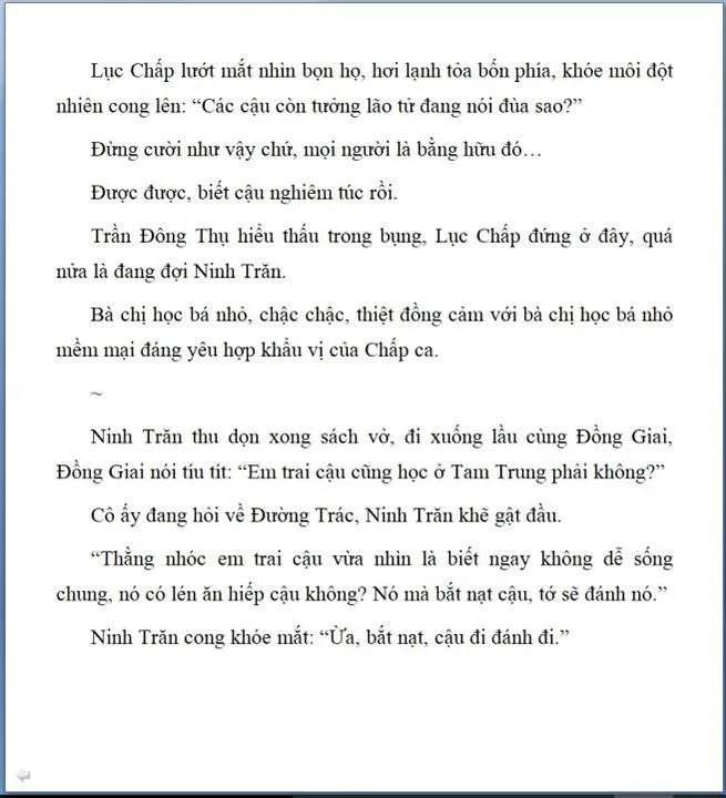 Mấy chương sau dễ thương lắm, nhưng có một số đoạn đọc rất thương Chấp ca.