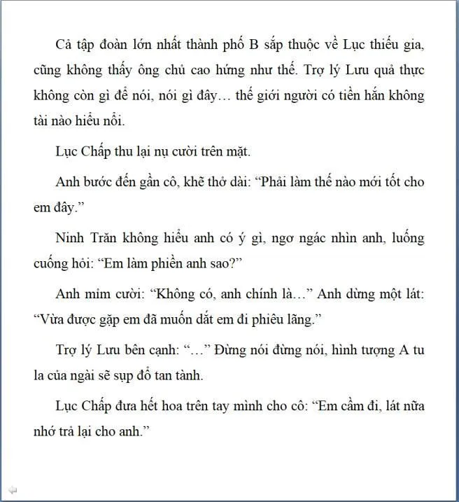 Rốt cuộc tâm trạng cũng sa sút. Ninh Trăn cầm lấy bó hoa trên bàn, lần này trả lại cho anh, mím môi không nói gì.