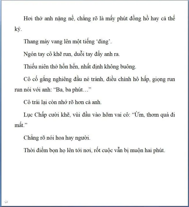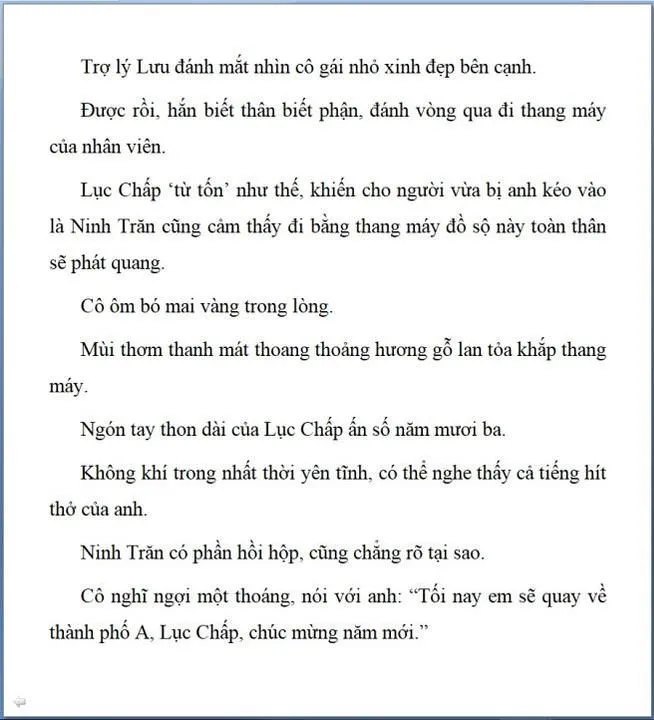 Cô cúi đầu:" Em phải đi, tám giờ rưỡi máy bay cất cánh. Lục Chấp, tạm biệt."