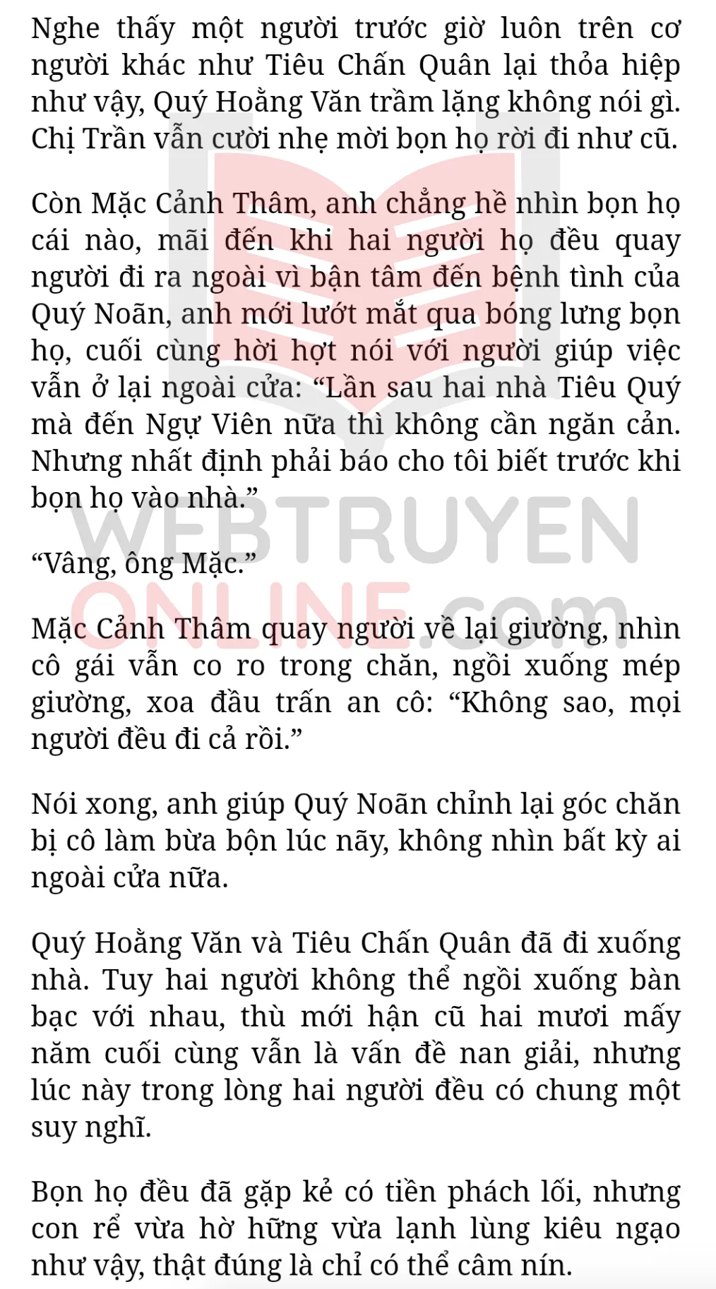 Nghe thấy câu trả lời của anh, Quý Noãn nhìn chằm chằm anh hồi lâu, nhưng hình như vẫn chưa thể hiểu được hàm nghĩa trong đó. Đọc truyện tại Web Truyen Onlinez . com