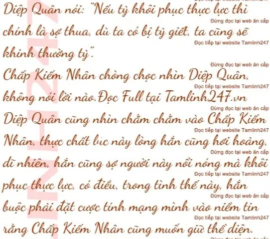 Hai người không để ý đến sự biến hóa khác thường vừa rồi, chỉ ngó chừng nhau, Chấp Kiếm Nhân nhìn chòng chọc vào Diệp Quân, ánh mắt sắc như kiếm, tràn đầy sát ý.