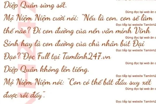 Diệp Quân nhìn Mộ Niệm Niệm, bà ấy cười nói: “Ở thời đại trước chủ nhân bút Đại Đạo, tuổi thọ của các sinh linh gần như vô tận, chỉ cần ngươi tu luyện thì sẽ có thể kéo dài tuổi thọ, có thể nói là sự hy sinh của vũ trụ để đổi lấy sự sống còn của bản thân. Sau khi chủ nhân bút Đại Đạo nắm quyền, ông ta muốn thiết lập một trật tự có sống chết, con nghĩ thử xem vốn dĩ con có thể sống rất lâu nhưng ông ta đột nhiên tới cưỡng ép đặt dấu chấm hết cho tuổi thọ của con, con có đồng ý không?”