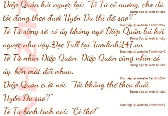 Diệp Quân mỉm cười: “Tô Tử cô nương, tôi nghĩ cô hiểu lầm rồi”.
