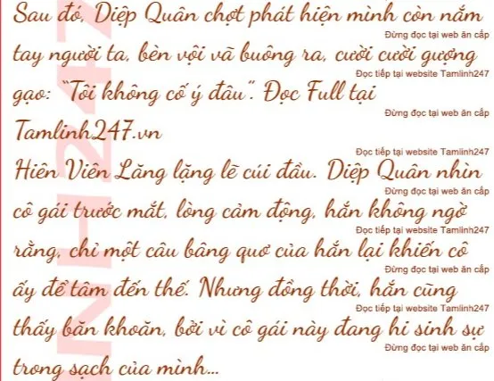Diệp Quân cười khổ: “Không ngờ tôi nói bao lâu thế mà vẫn chẳng ích gì à? Tôi chỉ sợ chuyện đó ảnh hưởng đến danh dự của cô thôi…”