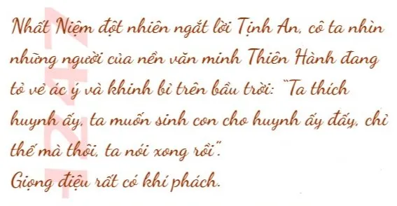 Vì tung hoành vũ trụ nhiều năm như thế, bọn họ gần như chưa từng gặp đối thủ. Nhất Niệm nhìn những người cùng tộc trước mắt, khi thấy sự tức giận và khinh bỉ trong mắt bọn họ, cô ta thầm thở dài: “Ta thích huynh ấy, nhưng ta cũng không muốn làm tổn thương mọi người!”