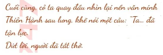 “Ta, Tuế Tuế, xin thề với trời, bày tỏ chí ta, cường địch trước mặt, không sợ không hãi, che chở con dân, thà chết không khuất phục… Chỉ cần sau lưng còn một trái cây, ta sẽ chiến tới giọt máu cuối cùng.”