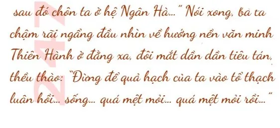 Phục Võ lắc đầu, tiếp tục nói: “Chuyện thứ hai.. ta vẫn luôn muốn đến nơi có tên là hệ Ngân Hà đó nhìn xem, đáng tiếc… vẫn mãi không có thời gian… ta hy vọng… sau này nếu ngươi có thời gian, đưa quả hạch của ta đến hệ Ngân Hà một chuyến… đưa ta đi ăn những món ngon của hệ Ngân Hà…