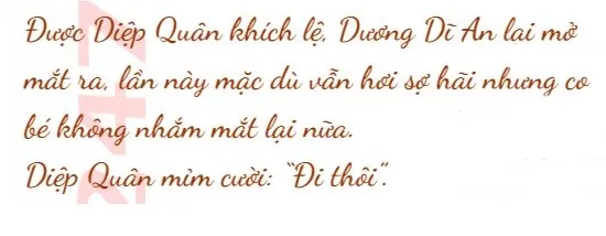 Nghe Diệp Quân nói thế, Dương Dĩ An mở một mắt ra, lúc nhìn thấy bên dưới, cô bé hoảng sợ, vội nhắm mắt lại.