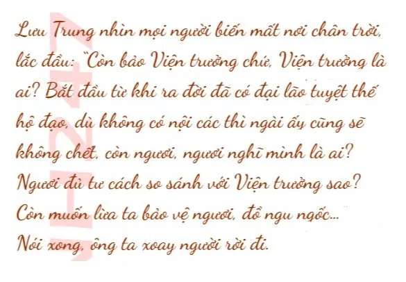 Diệp Quân nhìn chằm chằm Lưu Trung: “Chỗ dựa của ta là Viện trưởng, là Quan Huyên Pháp”.