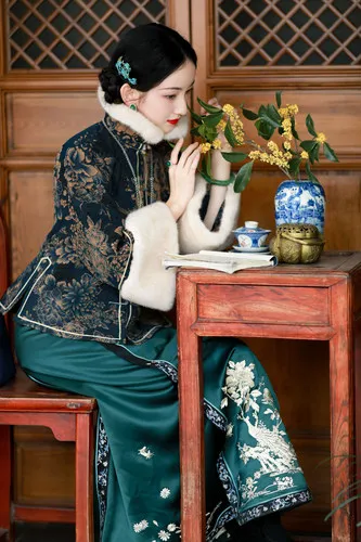 [2] Một loại trang phục cổ truyền của người Trung Quốc, khá giống kiểu váy áo của triều Thanh, thường mặc trong những dịp lễ tiệc lớn, có cổ áo cao che khuất một phần cằm.