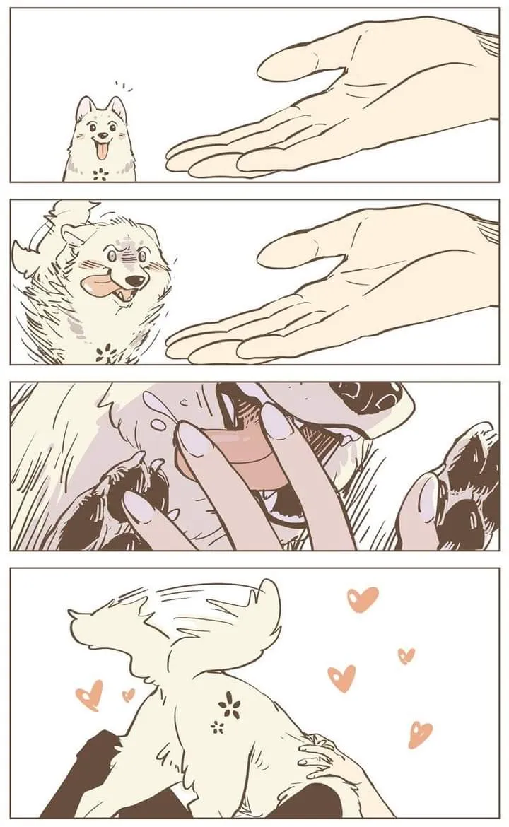 Lúc tỉnh dậy nàng phát hiện mình đang nằm trong một lồng ngực ấm áp và vững chãi, hơi thở và hương vị của vòng ôm này giống chú chó vàng to như đúc.
