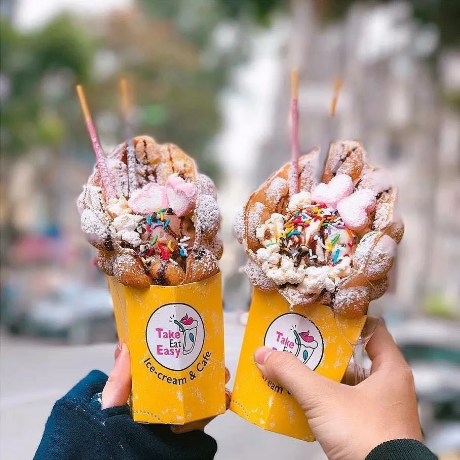Bởi vì nữ nhân viên cửa hàng có tâm tư riêng, cho nên làm phần kem này vô cùng nhiều, bên trên còn phủ đầy dâu tây, việt quất và vụn sô cô la.