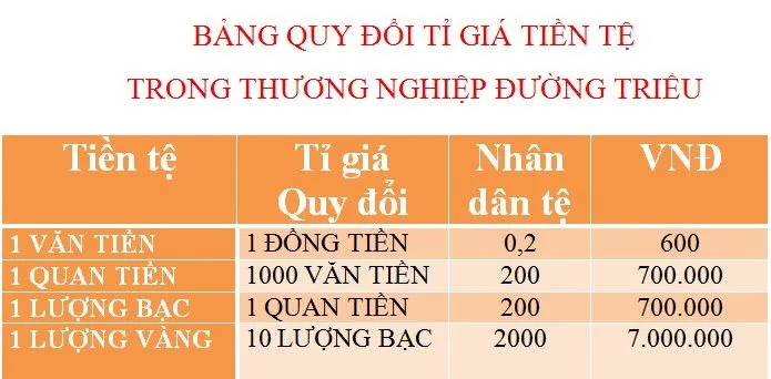 *Ở đây chú giải thêm một chút Tỉ giá tiền tệ trong thương nghiệp thời nhà Đường: [so sánh với ngày nay]. [Lưu ý: 1 NDT = 3.300 VNĐ]