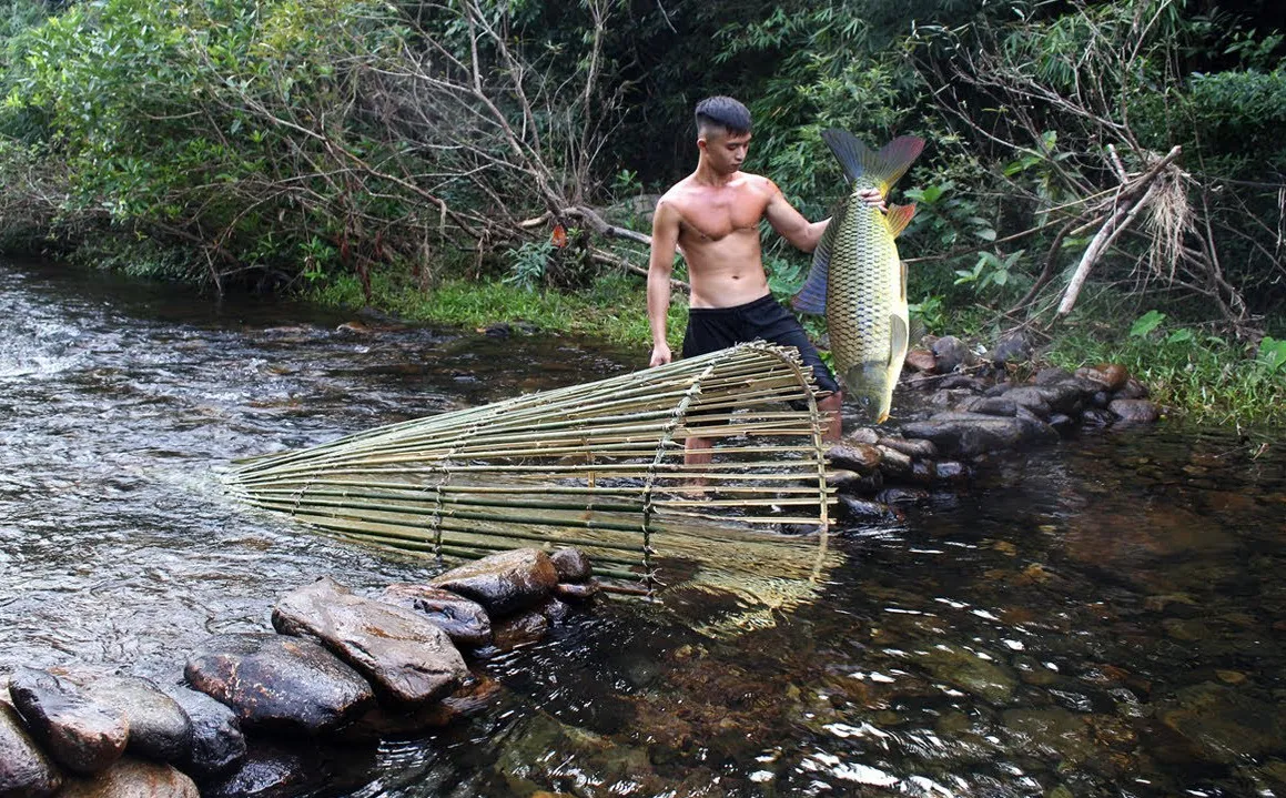 (Kiểu bẫy cá bằng đá. Còn bạn Thụ là xem tut trên Douyin, bản gốc bên Tàu của con Tiktok nha.)