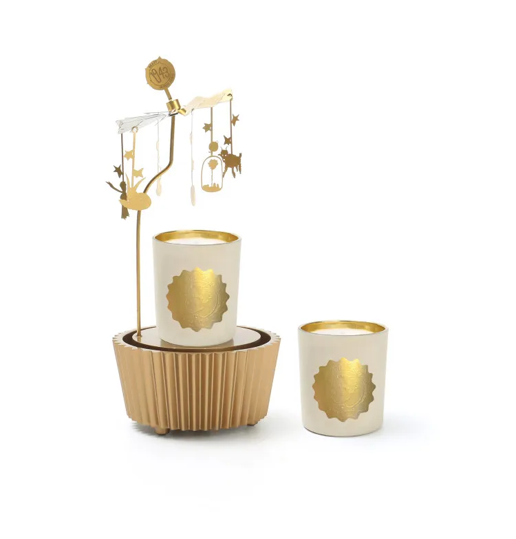 Phần đế của chân nến xoay tròn phát nhạc The Beast Hoàng Tử Bé* sẽ bắt đầu xoay tròn dưới hơi nóng. Trên giá nến có treo sáu món trang trí màu vàng khác nhau, lan tỏa ánh sáng mộng mơ dưới ánh nến.