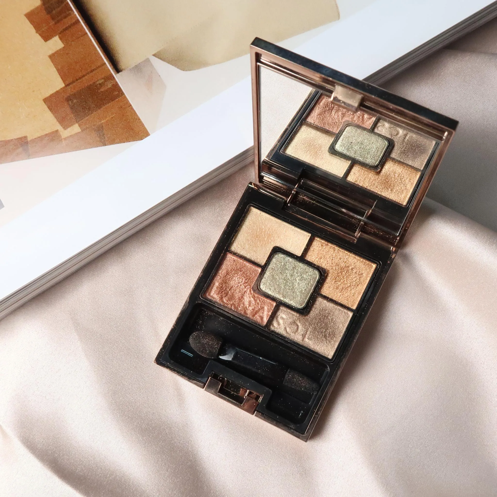 Mí mắt được điểm xuyết bằng màu xanh lá lấp lánh đặc biệt nhất trong Lunasol Opal*. Đôi môi được phủ một lớp Mac Devoted Chili mỏng, dùng ngón tay tán nhẹ từ giữa môi ra khóe môi, làm mờ đường viền môi để tạo ra một lớp son môi lì như sương mù, nhưng lại rất trong suốt và mịn màng.