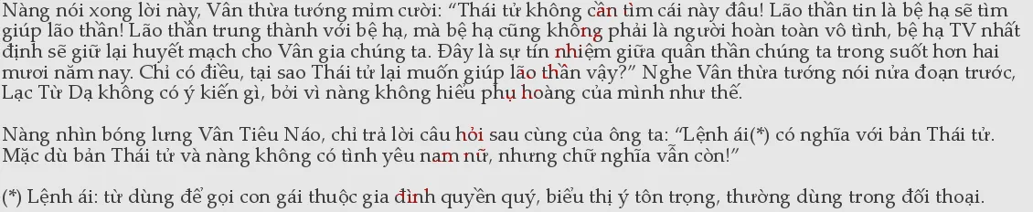 Vân thừa tướng nói đến đây, Lạc Tử Dạ đã thoáng hiểu ra. Đúng như nàng nghĩ, Vân thừa tướng lại nói tiếp: “Lão thần không lo được cho những người khác, thế nhưng cả đời đứa con gái này của lão thần chưa từng phải trải qua khổ cực8gì. Những tên lính áp giải người lưu đày có mấy ai là người tốt đâu, chuyện bọn chúng hủy hoại các cô gái trẻ chẳng phải là chuyện hiếm. Sức khỏe Náo Nhi không tốt, nếu con bé phải đi tái ngoại, lặn lội đường xa thì không chừng phải bỏ mạng giữa đường. Vì vậy, lão thần cầu xin Thái tử hãy nể mặt lão thần mà giữ Náo Nhi ở lại kinh thành. Đây là nguyện vọng duy nhất của lão thần! Hơn nữa, Thái tử vì Náo Nhi mới giúp lão thần, bây giờ lão thần chỉ cầu xin Thái tử bảo vệ Náo Nhi, như vậy cũng coi như Thái tử đạt được mong muốn, không thẹn với lương tâm.”