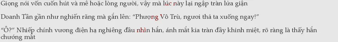 Giọng nói vẫn ngạo mạn, lạnh lùng và bình tĩnh như thường: “Thả ngươi xuống à? Ngươi có chắc là ngươi có thể đi lại dễ dàng không?” Sắc mặt Doanh Tần càng thêm khó coi.