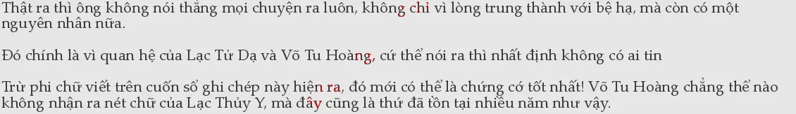 3ho nên, trừ phi chữ trên đây hiện ra. Nếu không thì cho dù ông nói ra, Võ Tu Hoàng và Lạc Tử Dạ cũng chỉ coi như ông đang kể chuyện cười, sẽ chẳng ai tin! Nếu đã như vậy thì nói cũng vô ích, không bằng để cho Lạc Tử Dạ tự mình giải nước Vô Ngân cùng với chữ trên đó, quan hệ của bọn họ cứ để bọn họ tự giải quyết đi